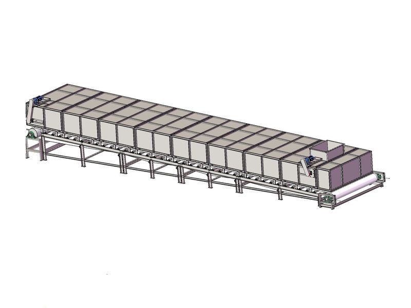 通過倉(cāng)體下面的托輥和輸送網(wǎng)帶,載著一定堆積高度的物料以平流的方式向前移動(dòng),通過計(jì)算倉(cāng)體長(zhǎng)度,在預(yù)定的時(shí)間點(diǎn)準(zhǔn)時(shí)出料,使原料與化學(xué)藥劑在特定環(huán)境下進(jìn)行充分反應(yīng)。